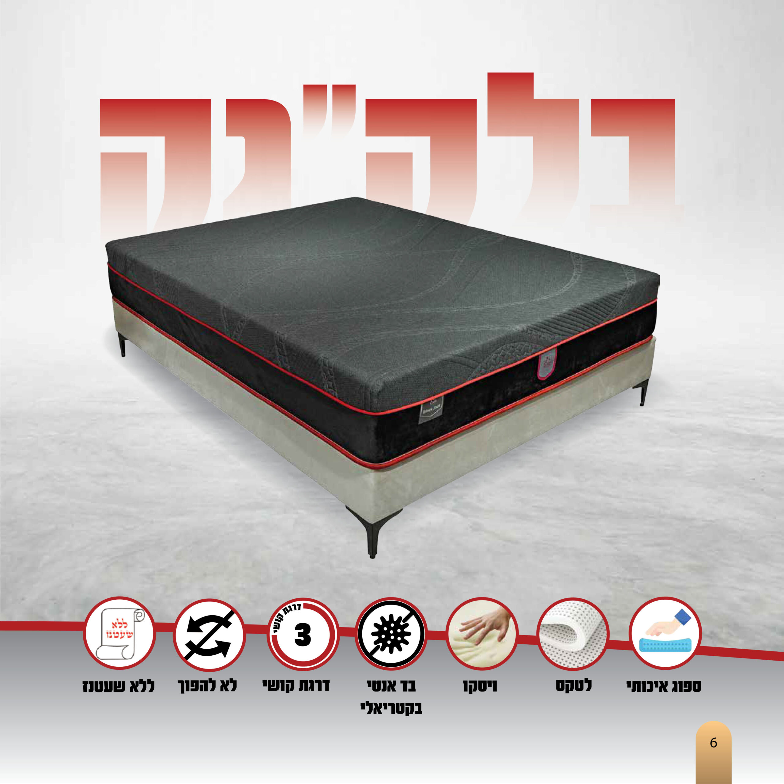 מזרן בעיצוב חדשני משדרג את איכות השינה כל לילה מחדש. מזרן ספוג מסדרת אימפריה היוקרתית, בשילוב לטקס טבעי + ויסקו אלסטי. בד יוקרתי נושם אוורירי ללא אריגה או תפירה מסביב המעניק תחושת נוחות מלטפת, מרגיעה ומראה חלק במיוחד עם מצעים.
